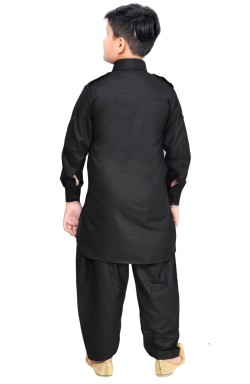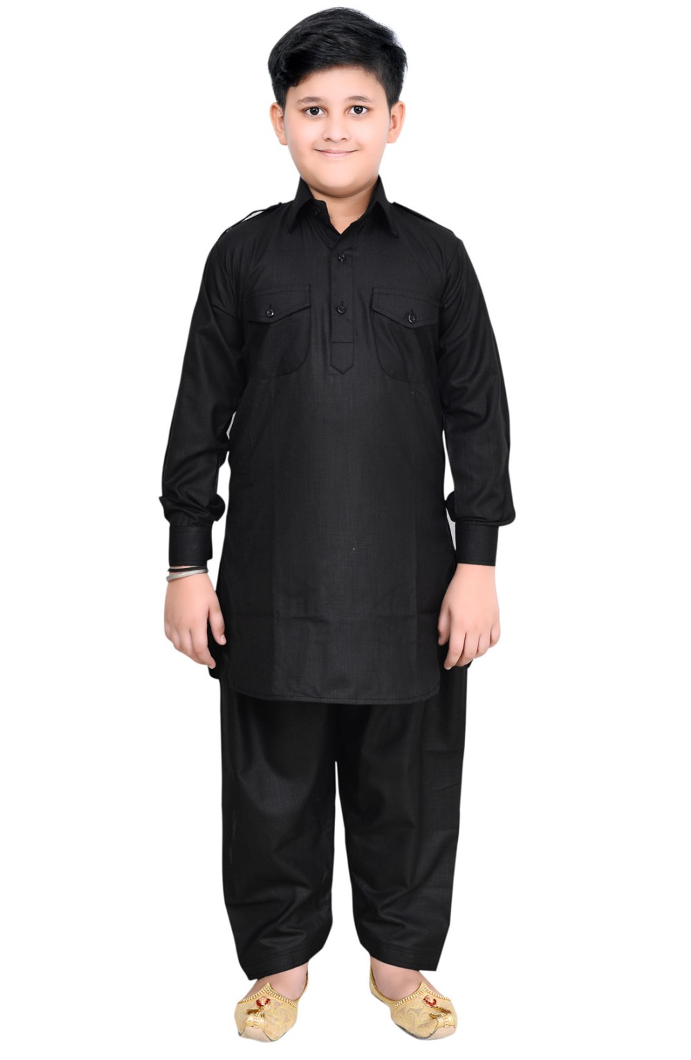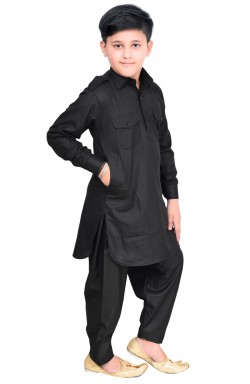 Boys Punjabi Pathani style smart Shirt collar Kurta in plain soft cotton fabric, comes with matching salwar. Shalwar comes with drawstring, available in various sizes, from Desi Sarees Southall London.