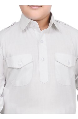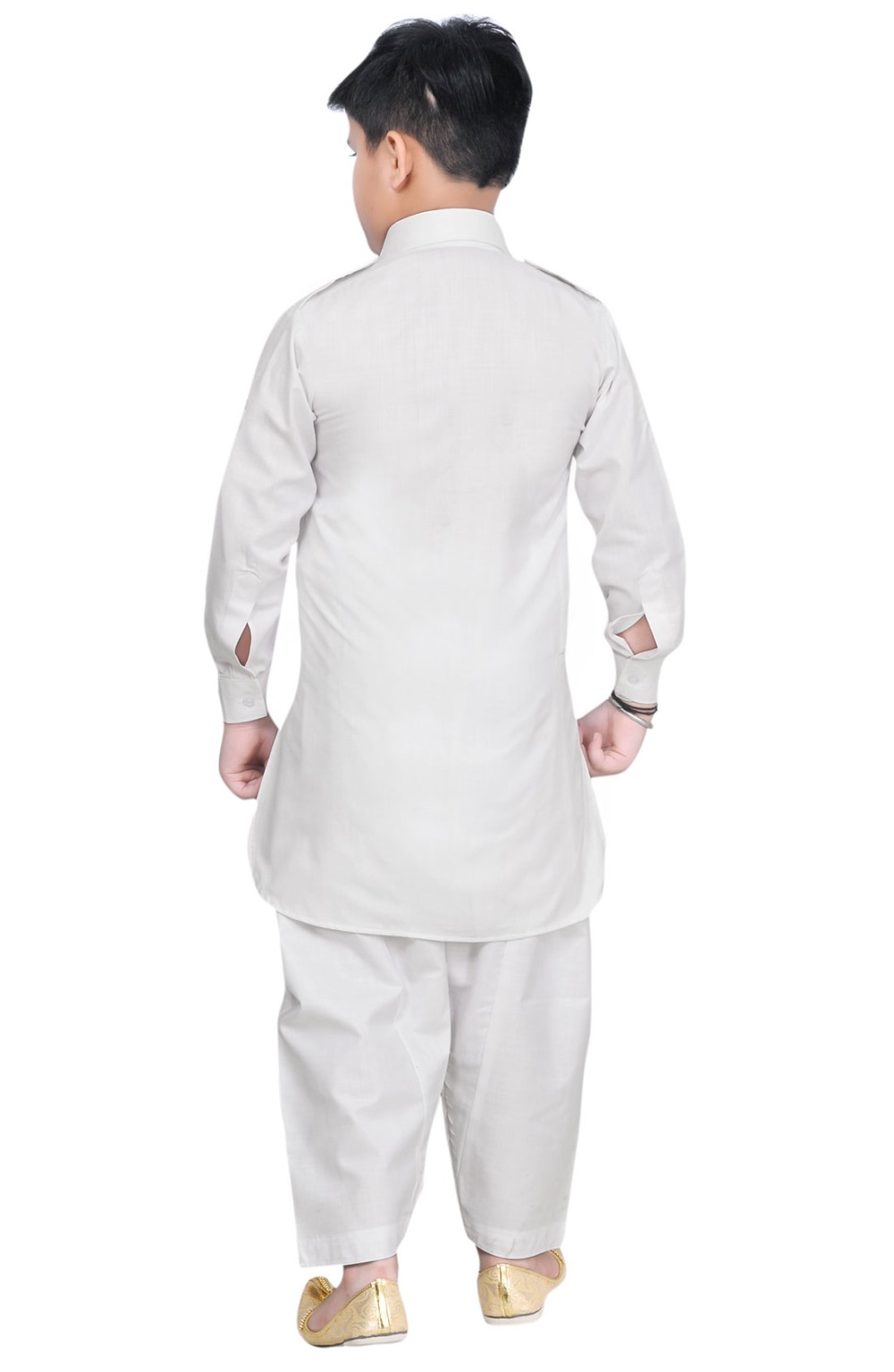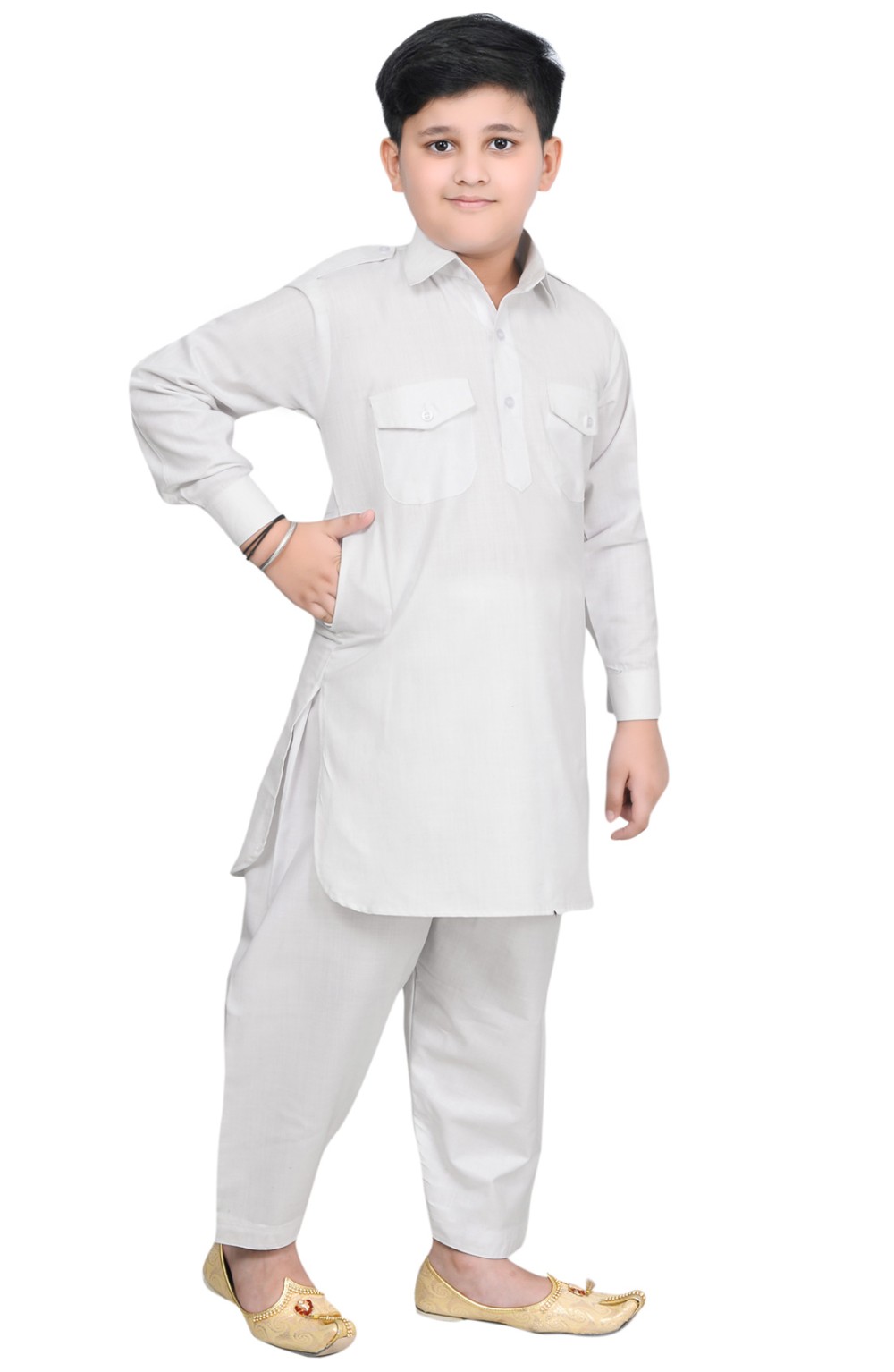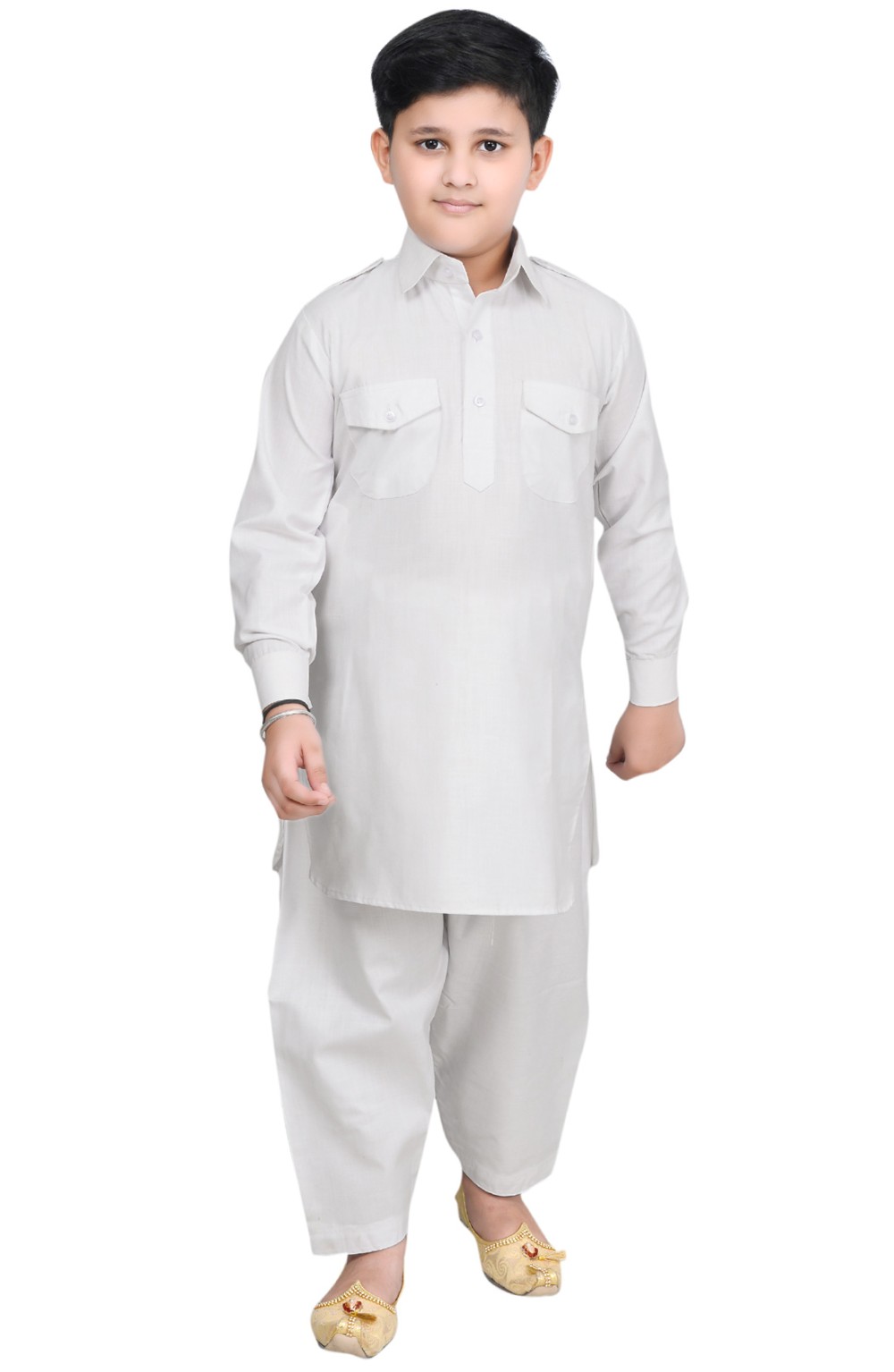 Boys Punjabi Pathani style smart Shirt collar Kurta in plain soft cotton fabric, comes with matching salwar. Shalwar comes with drawstring, available in various sizes, from Desi Sarees Southall London.