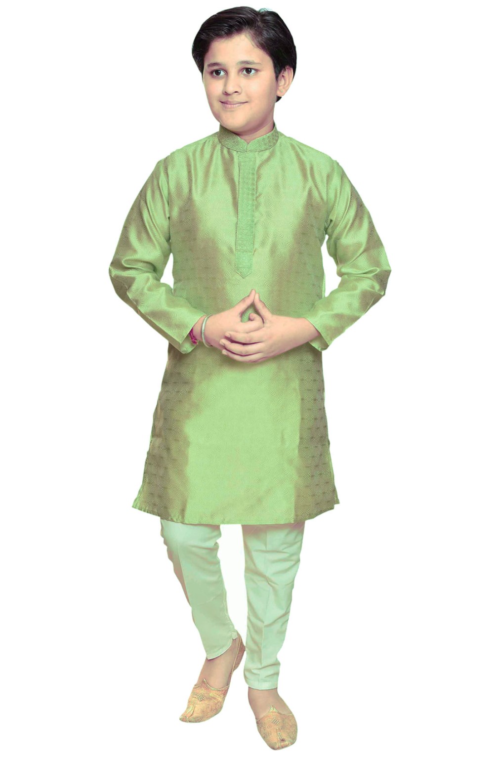 Boys kurta in Soft Silky Cotton with fancy buttons, comes along with matching trouser in the same material from Desi Sarees Southall London. This has a traditional drawstring pajama Pants trousers.