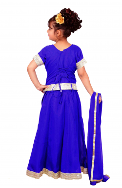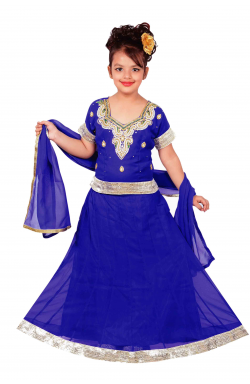 Children lehanga suit in georgette fabric with stones, beads and zari embroidery along with matching dupatta (scarf). Skirt (lehenga) has approx. 2" gold border all around at the bottom as shown in picture.