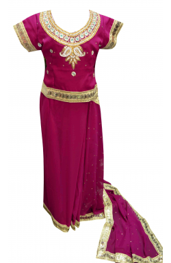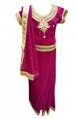 Desi Sarees offers Children ready to wear Saree in Georgette fabric with stones and zari embroidery along with 2 inch silver border all around the edges as shown in picture. Ideal for wedding and party wear.