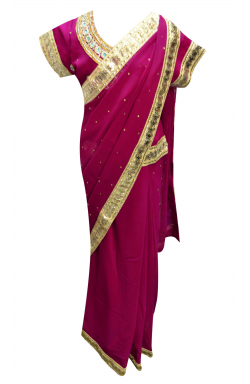 Children ready made Saree in georgette fabric with stones and zari embroidery along with 2 inch border all around the edges as shown in picture. Colour may vary slightly due to different screen resolutions on computers and other devices such as Smart phones, ipads etc. Ideal for Weddings, party wear, Bollywood theme and International Cutural Day.