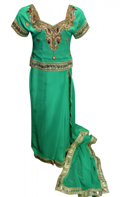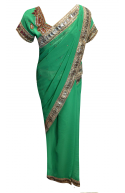 Children ready made Saree in georgette fabric with stones and zari embroidery along with 2 inch border all around the edges as shown in picture. Colour may vary slightly due to different screen resolutions on computers and other devices such as Smart phones, ipads etc. Ideal for Weddings, party wear, Bollywood theme and International Cutural Day.