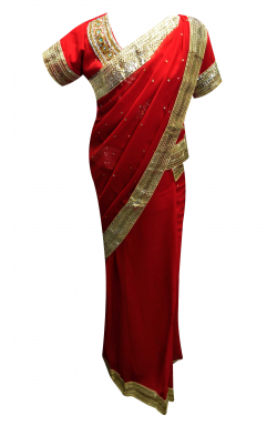 Children ready made Saree in georgette fabric with stones and zari embroidery along with 2 inch border all around the edges as shown in picture. Colour may vary slightly due to different screen resolutions on computers and other devices such as Smart phones, ipads etc. Ideal for Weddings, party wear, Bollywood theme and International Cutural Day.