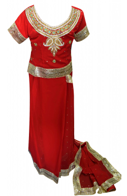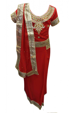 Desi Sarees offers Children ready to wear Saree in Georgette fabric with stones and zari embroidery along with 2 inch silver border all around the edges as shown in picture. Ideal for wedding and party wear.