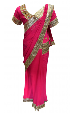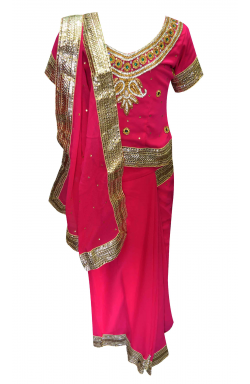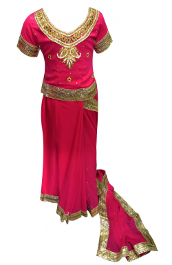 Desi Sarees offers Children ready to wear Saree in georgette fabric with stone and zari embroidery along with 2 inch silver border all around the edges as shown in picture. Ideal for wedding and party wear.