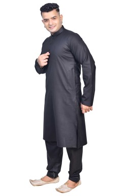 Men's traditional Indian/Pakistani smart Kurta shalwar Kameez in plain soft cotton fabric with buttons and side pockets, comes with matching Shalwar (pants). Available in various sizes