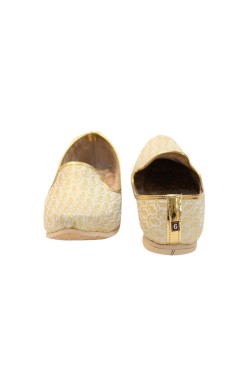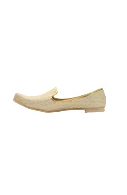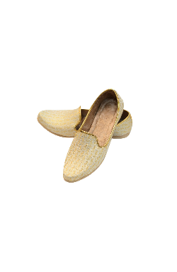 This Punjabi Jutti also called Mojari originating from Punjab India and Pakistan which is made from synthetic fabric with zari work and velvet lining for comfortable wear. These shoes are known for their intricate designs, craftsmanship, and cultural significance.