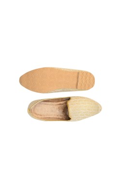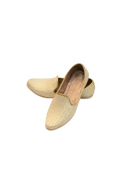 This Punjabi Jutti also called Mojari originating from Punjab India and Pakistan which is made from synthetic fabric Some with zari or thread work and velvet lining cushion for comfortable wear. These shoes are known for their intricate designs and craftsmanship.