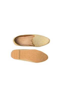 This Punjabi Jutti also called Mojari originating from Punjab India and Pakistan which is made from synthetic fabric Some with zari work and velvet lining cushion for comfortable wear. These shoes are known for their intricate designs and craftsmanship.