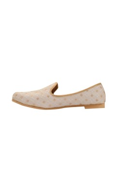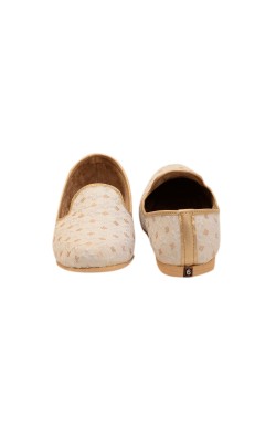This Punjabi Jutti also called Mojari originating from Punjab India and Pakistan which is made from synthetic fabric with zari work and velvet lining for comfortable wear. These shoes are known for their intricate designs, craftsmanship, and cultural significance.