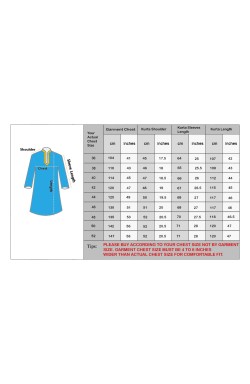 If your actual chest size is 38 inches all the way around we recommend you to buy size 38. The same applies to other sizes also. Please buy according to your actual chest size not by garment size. Garment chest size must be 4 to 6 inches wider than your actual chest size for comfortable fitting. Kindly measure the biggest part of your chest to determine your correct size before purchasing this item.