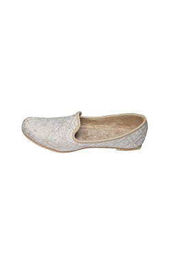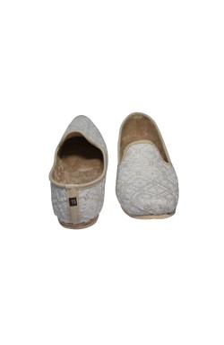 This Punjabi Jutti also called Mojari originating from Punjab India and Pakistan which is made from synthetic fabric Some with zari work and velvet lining cushion for comfortable wear. These shoes are known for their intricate designs and craftsmanship.