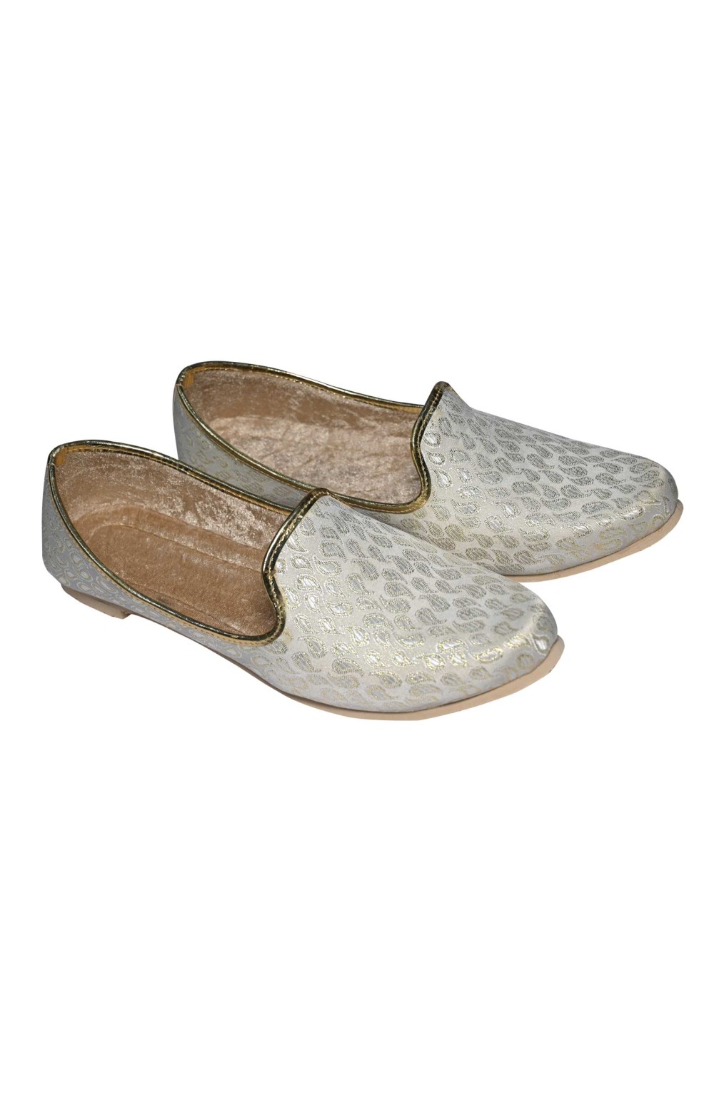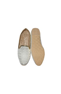This Punjabi Jutti also called Mojari originating from Punjab India and Pakistan which is made from synthetic fabric with zari work and velvet lining for comfortable wear. These shoes are known for their intricate designs, craftsmanship, and cultural significance.