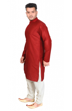 Men's traditional Smart party wear kurta shalwar in plain silk-blend fabric, kurta embroidered with matching resham (thread) to give rich look comes along with off white plain cotton salwar, available in various sizes. Our size chart is provided in the image section. This traditional salwar (pants) which is baggy on top and has a drawstring around the waist.
