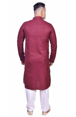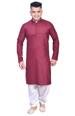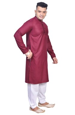 Men's traditional Indian/Pakistani smart Kurta shalwar Kameez in plain soft cotton fabric with buttons and side pockets, comes with off white contrast Shalwar (pants). Available in various sizes