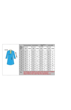 KINDLY NOTE THAT ALL KURTAS ARE MEANT TO BE WORN LOOSE. If your chest size is 38 inches (96 cm) all the way around we recommend you to buy size 38. You will receive labeled size 38 kurta with chest size 43” (109 cm) including 5” (13 cm) margin for a better fitting. Same applies to other sizes also. PLEASE CONTACT US IF YOU NEED ASSISTANCE REGARDING SIZES.