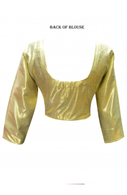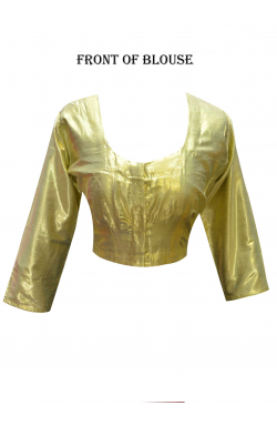 Desisarees Southall London UK offers brand new with company tag Indian Shimmer Light Gold saree blouse (choli) Top in long sleeve finishing with gold piping on the edges and front hook opening for easy wear. This blouse has cotton lining except on the sleeves. Ideal to match your favorite saree or give the latest new contrast look. Colours may vary slightly.