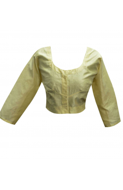 Indian Raw Silk saree blouse (choli) Top in long sleeve finishing with gold piping on the edges and front hook opening for easy wear. This blouse has cotton lining except on the sleeves.Ideal to match your favorite saree or give the latest new contrast look. Colours may vary slightly.