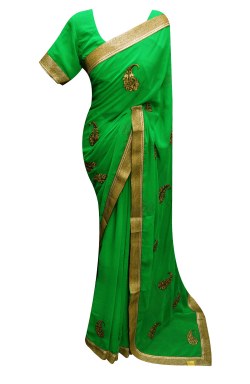 Women's Clothing from desi sarees uk offers Indian saree in Bright Green Chiffon fabric with 2 inches gold border along with floral embroidery all over saree as shown in picture, comes with ready made blouse size 38" (10-12 UK) with enough margin inside can be altered upto size 42" (14-16 UK). Blouse length is approx. 15"-16" Colours may vary slightly.