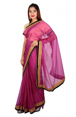 Women's Clothing from Desi Sarees Southall London UK offers Plum colour Indian saree in shimmer synthetic fabric with approx. 3 inches wide antique Gold lace and velvet border as shown in picture, comes with ready made Gold raw silk blouse in size 38" (10-12 UK) with enough margin inside can be altered up to size 42" (14-16 UK).