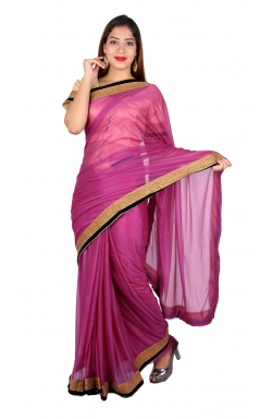 Lilac saree with Maroon colour contrast border and ready made blouse embroidered with zari, Resham and Stones in Chiffon fabric Ready made Blouse comes in size 38" (10 UK) with enough margin inside can be altered up to size 42" (14 UK). Blouses length is approx. 15" with long sleeves.