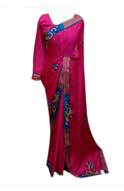 Women's Clothing from desi sarees uk offers Indian saree in Crimson and Lilac colour contrast Chiffon fabric with 3 inches border has floral pattern embroidery all over with sequins, Zari and resham (thread) as shown in picture, comes with ready made blouse. Colours may vary slightly.