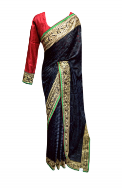Women's Clothing from Desi Sarees Southall London UK offers Black colour Indian saree in shimmer synthetic fabric with approx. 3 inches wide antique Gold lace and velvet border as shown in picture, comes with ready made Gold raw silk blouse in size 38" (10-12 UK) with enough margin inside can be altered up to size 42" (14-16 UK).