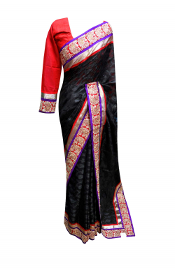 Elegant Grey Chiffon 3 inches wide colour contrast border saree with Zari (Gold thread) embroidery. Comes with ready made matching saree blouse as shown in picture. Ideal for weddings, birthdays and parties.