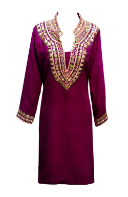 Desi Sarees Southall London offers brand new with company tag women's Georgette long traditional Indian style long sleeve kurti (Tunic) embroidered with Black Resham (thread) and small Gold stones around neck. Can be worn with coloured leggings.