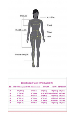 These tunic tops are approx. 41” (104 cm) in length. If your chest measures 38” (97 cm) all the way around the fullest part of your chest, we suggest you to buy size 38 (UK 10) Small. Same formula applies to other sizes also.